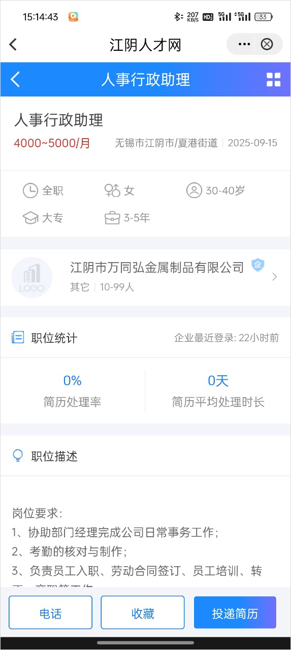 4、这里为大家提供了非常优质的工作岗位,根据自己得需求选择