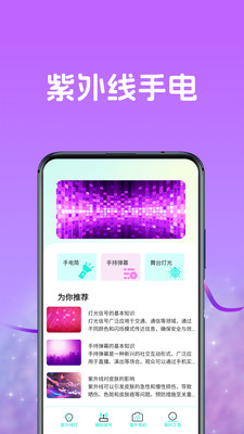 紫外线手电筒是款可以照出紫外线的手机手电筒,亮度大,只需通过触摸就能开启!