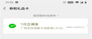 3、在微信“我“->”卡包”->”券和礼品卡”查看领到的券。