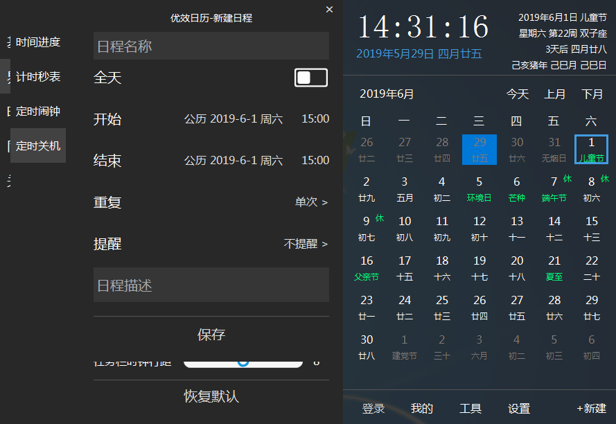 5、软件内置了排班助手、日期计算、良辰吉日、整点报时等实用工具,满足用户在不同场景下的需求。